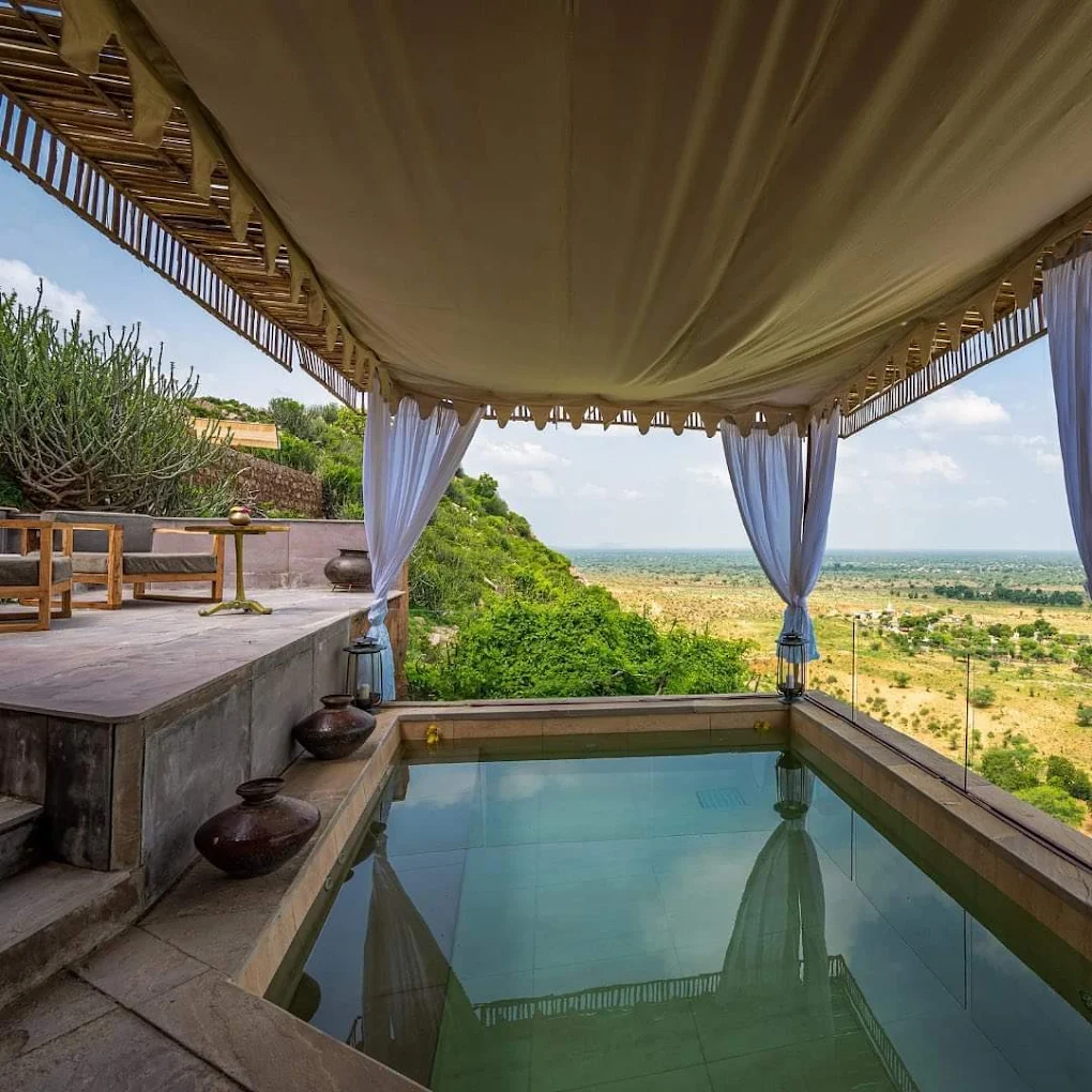 With 40 rooms and suites, Mundota Fort & Palace is all about the splendour of Rajput-Mughal architecture. Each of the rooms is done in the use of traditional furniture handcrafted on-site so that every stay would be a drenched-in-royalty experience. There are five exclusive suites for couples, complete with private plunge pools, Jacuzzis and expansive terraces. This gives unbelievable 360° views of the region that could just make it perfect for a romantic getaway or honeymoon.