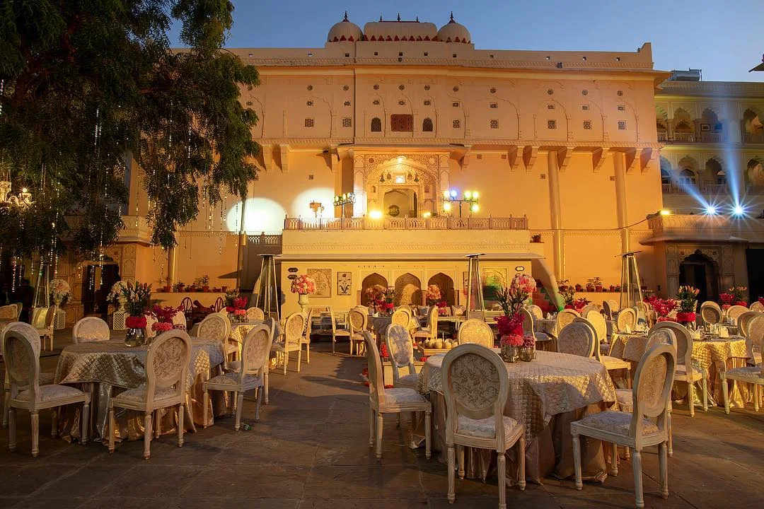 For destination weddings, the ideal place in Jaipur to get married is Mundota Fort & Palace. There are as many as 12 varied banqueting spaces at this property, some lush gardens, beautifully crafted indoor halls, terraces, and pavilions, each of which is a testament to the architectural brilliance of the Rajput-Mughal era, thus giving your pre-wedding ceremonies, sangeet, reception, etc. a magnificent backdrop.