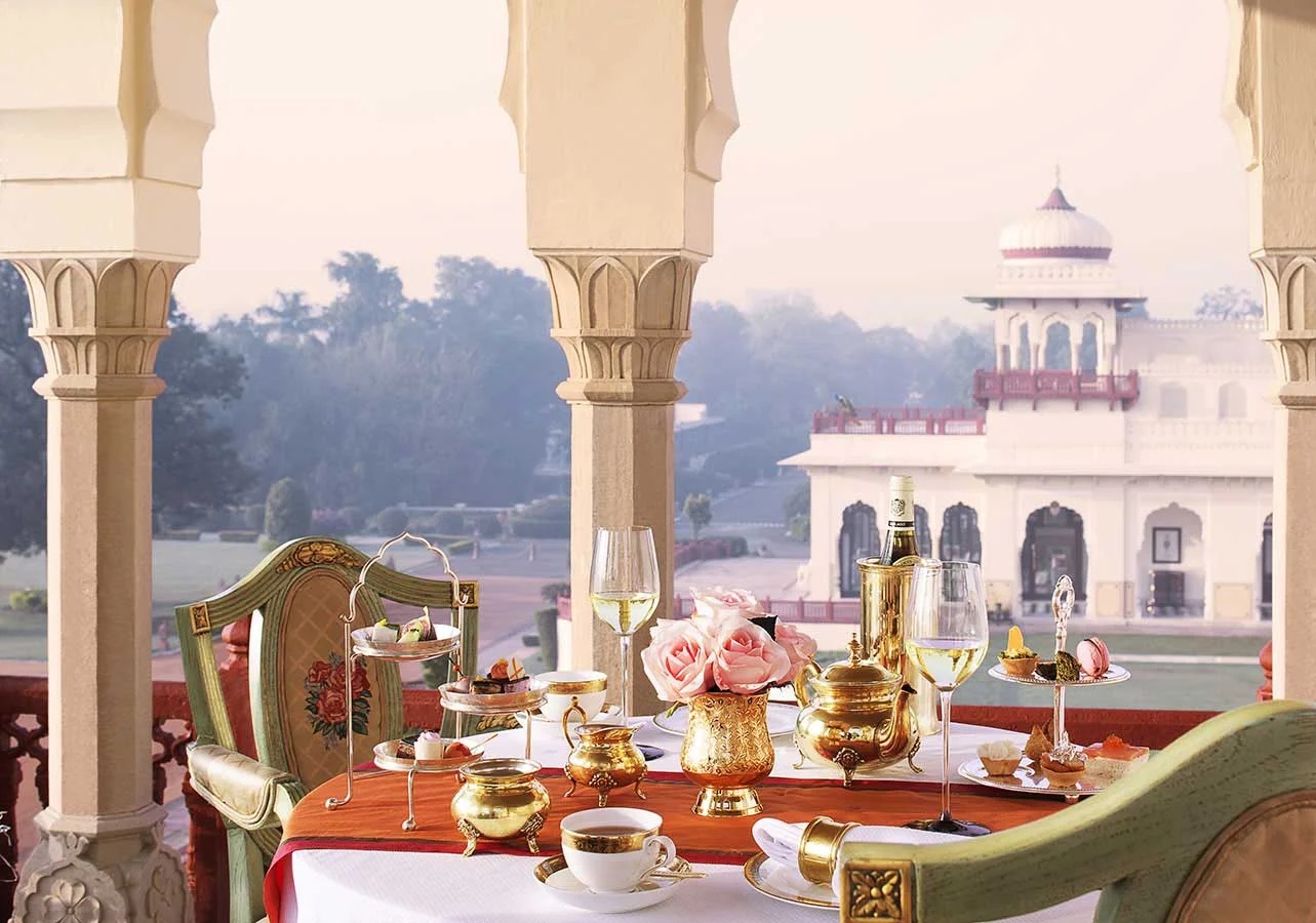 The Verandah Café at Rambagh Palace offers a serene escape in the heart of Jaipur — a perfect setting to indulge in champagne tea, pre-dinner cocktails, or light gourmet fare.
