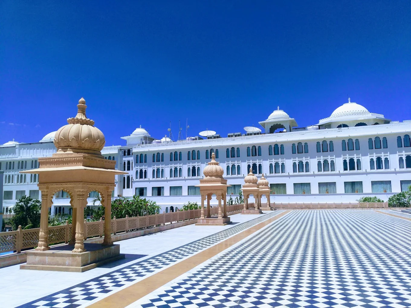 Radisson Blu Udaipur Palace Resort & Spa, looks out over FatehSagarLake and AravaliRanges. Each of our 244 rooms and suites include modern decor and plush amenities like bathrobes and slippers. Guests can savour a wide range of cuisines served at 5 F&B outlets. Drinks and dancing are on order at H2O, the bar adjacent to our beautiful two-tier outdoor pool. Other services include a soothing spa, a helpful travel desk and superb event facilities that boast the largest pillar less banquet hall in the state and wide range of entertainment options